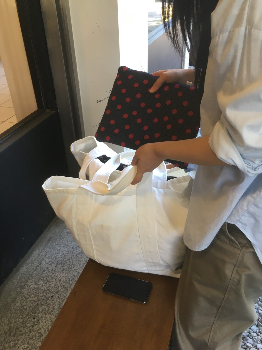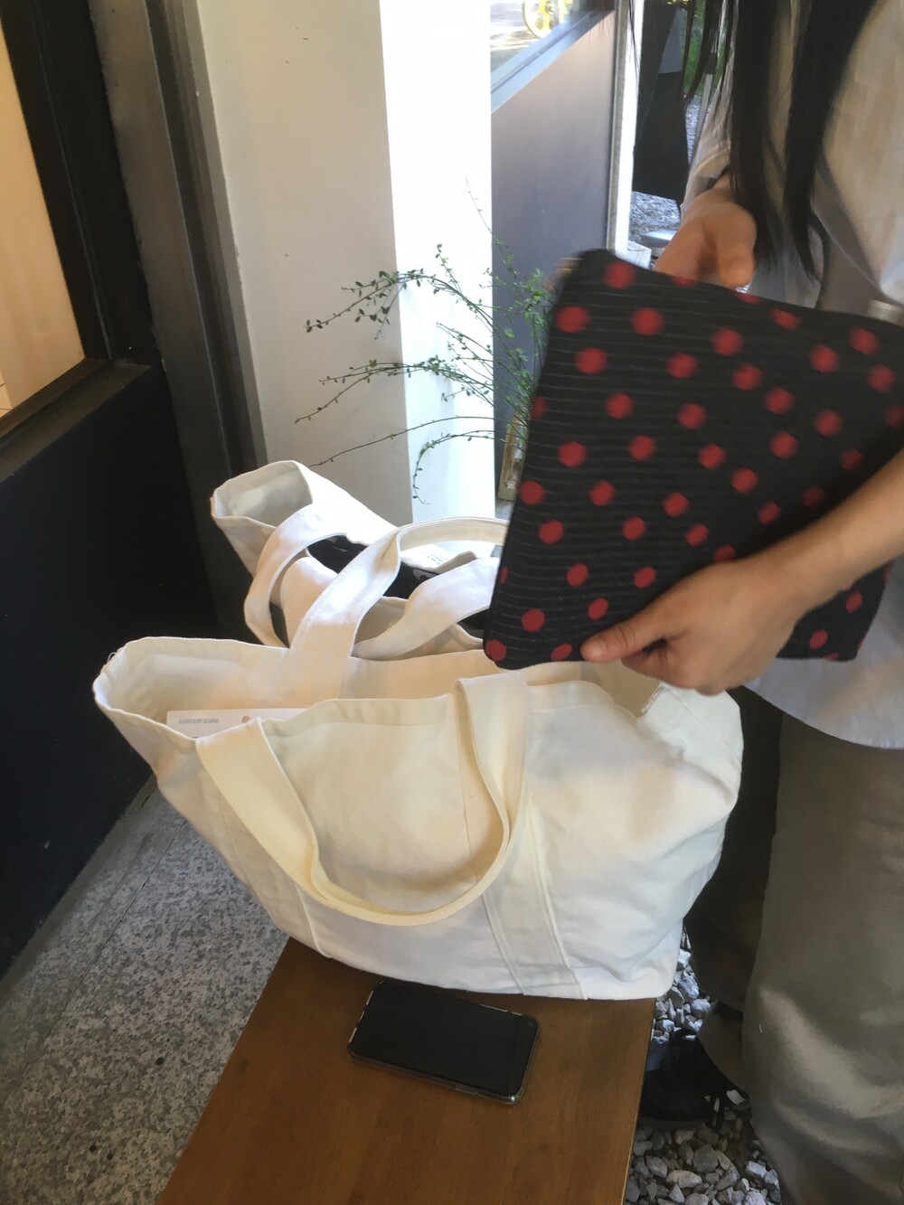 책 주머니 * 차분한 빨간 콕콕