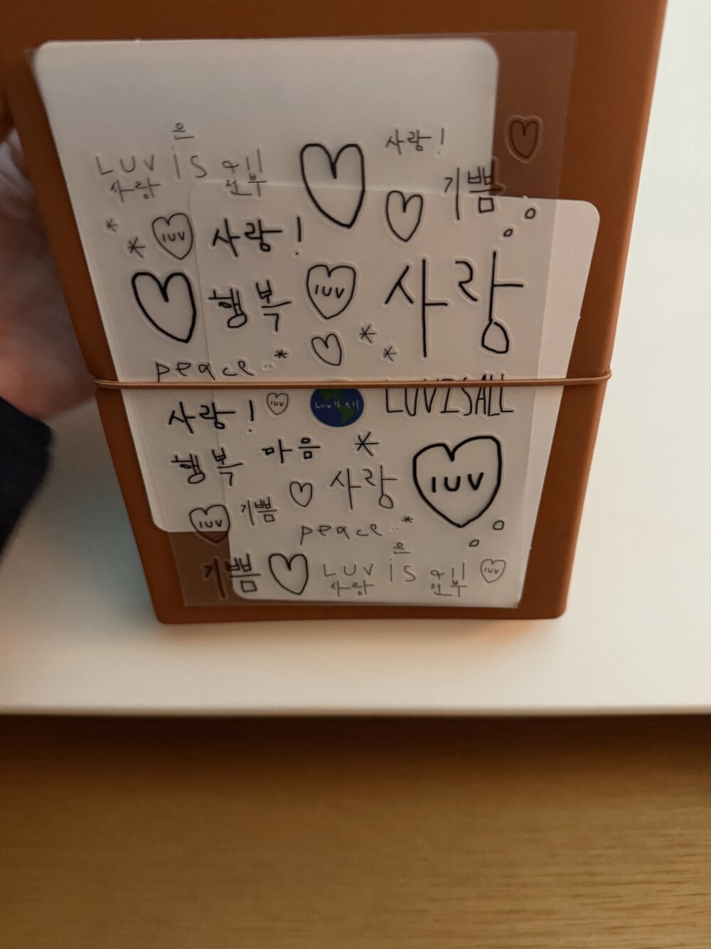 마음에 닿는 단어들로 휴대폰 뒤를 꾸며보세요 .
