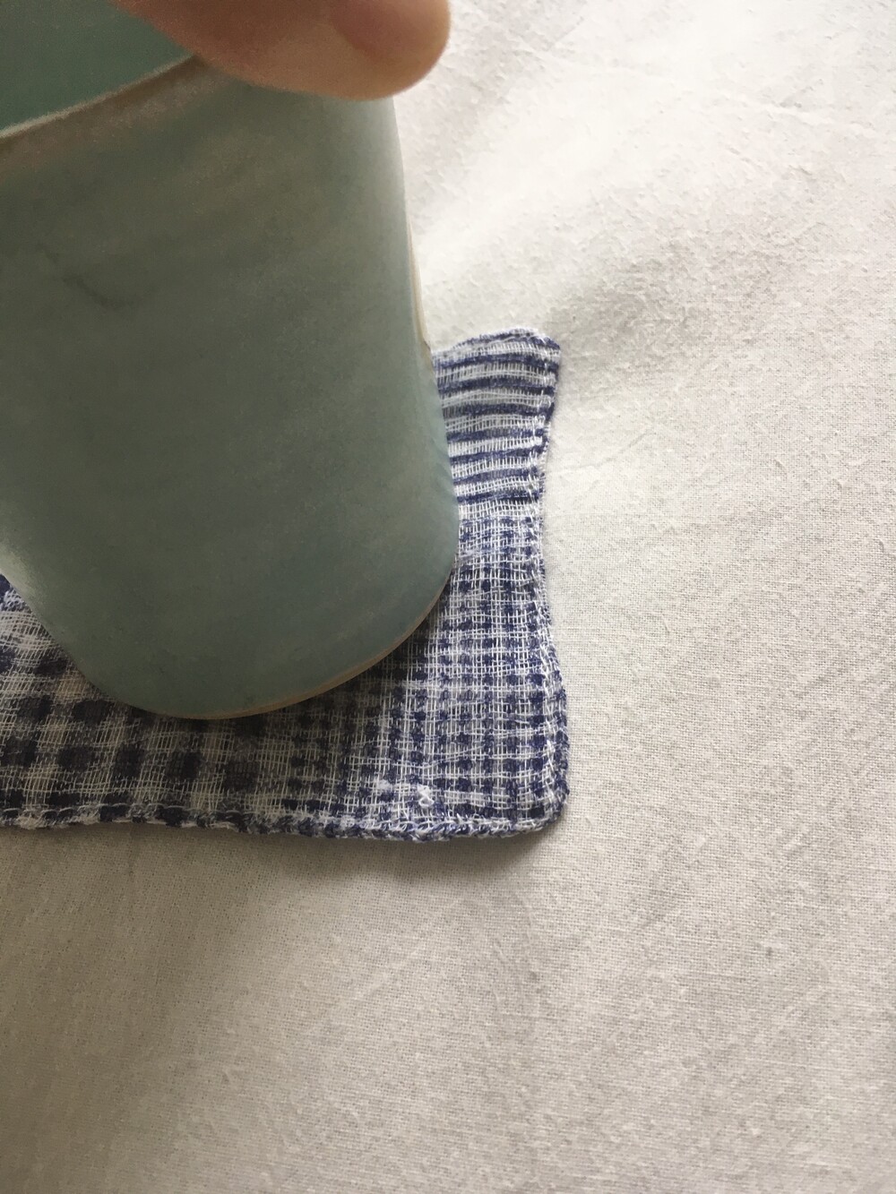컵받침 뒤에 손을 놓아 보면 은은하게 실루엣이 보여져요 .